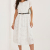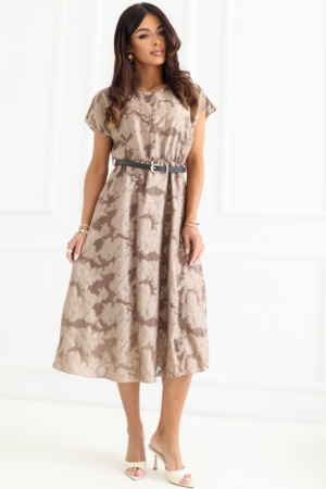 Μια κομψή φούστα σε γραμμή Α, ιδανική για ειδικές περιστάσεις και εκδηλώσεις. Το μοντέλο μήκους midi αναδεικνύει όμορφα τη σιλουέτα, προσφέροντας παράλληλα άνεση και ελευθερία κινήσεων. Το κοντό μανίκι και ο κλασικός στρογγυλός λαιμόκοψη προσδίδουν στην συνολική εμφάνιση διαχρονικό χαρακτήρα. Η φούστα έχει κατασκευαστεί από υψηλής ποιότητας μείγμα λιόσελ και πολυεστέρα, γεγονός που καθιστά το ύφασμα ευχάριστο στην επαφή, ελαφρύ και να είναι καλά τοποθετημένο στο σώμα. Η ποικιλία της υφής του υφάσματος προσθέτει μοναδικότητα και διακριτική κομψότητα. Το μοντέλο δεν έχει κλείσιμο, κάτι που αυξάνει την άνεση κατά την χρήση. Το εσωτερικό είναι φινιρισμένο με φόδρα, που παρέχει καλύτερη εφαρμογή και άνεση. Ένα επιπλέον πλεονέκτημα είναι η ζώνη με κλείσιμο, η οποία αναδεικνύει τη μέση και επιτρέπει την προσαρμογή της φούστας στη σιλουέτα. Είναι μια εξαιρετική επιλογή για γυναίκες που εκτιμούν το στυλ, την άνεση και την κομψότητα σε μοντέρνο σχέδιο.